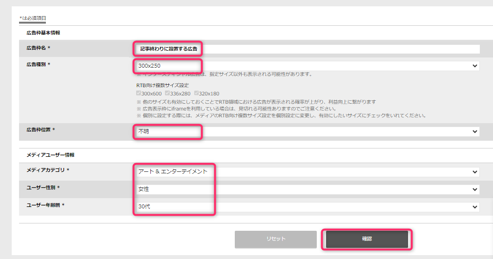 広告種別:300×250(バナー広告)