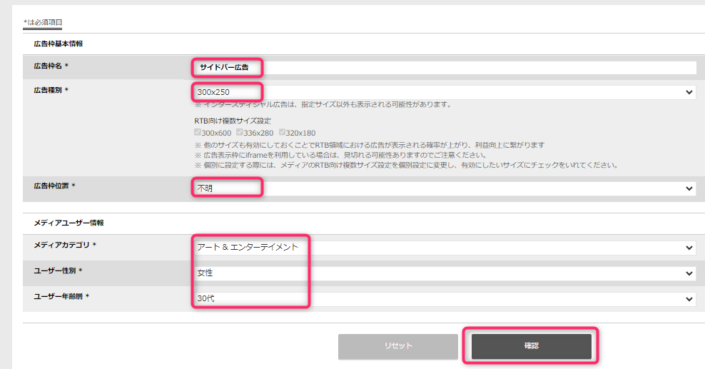 広告枠基本情報