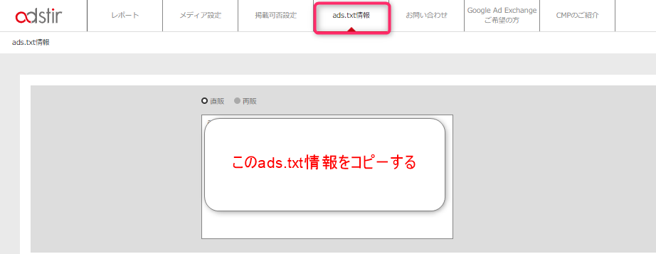 ユナイテッドのads.txt情報はadstirの管理画面にあります!
