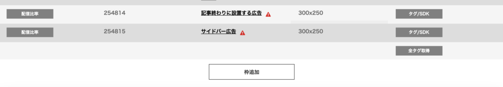 各広告枠を追加していきます。