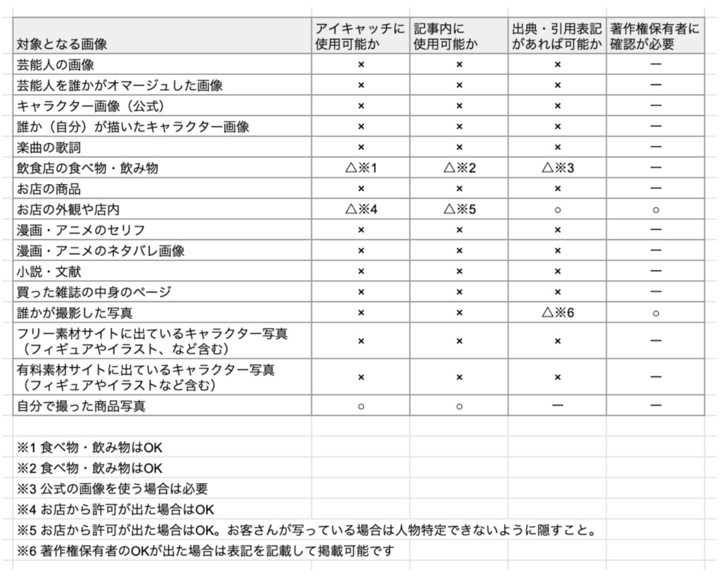 画像著作権早見表