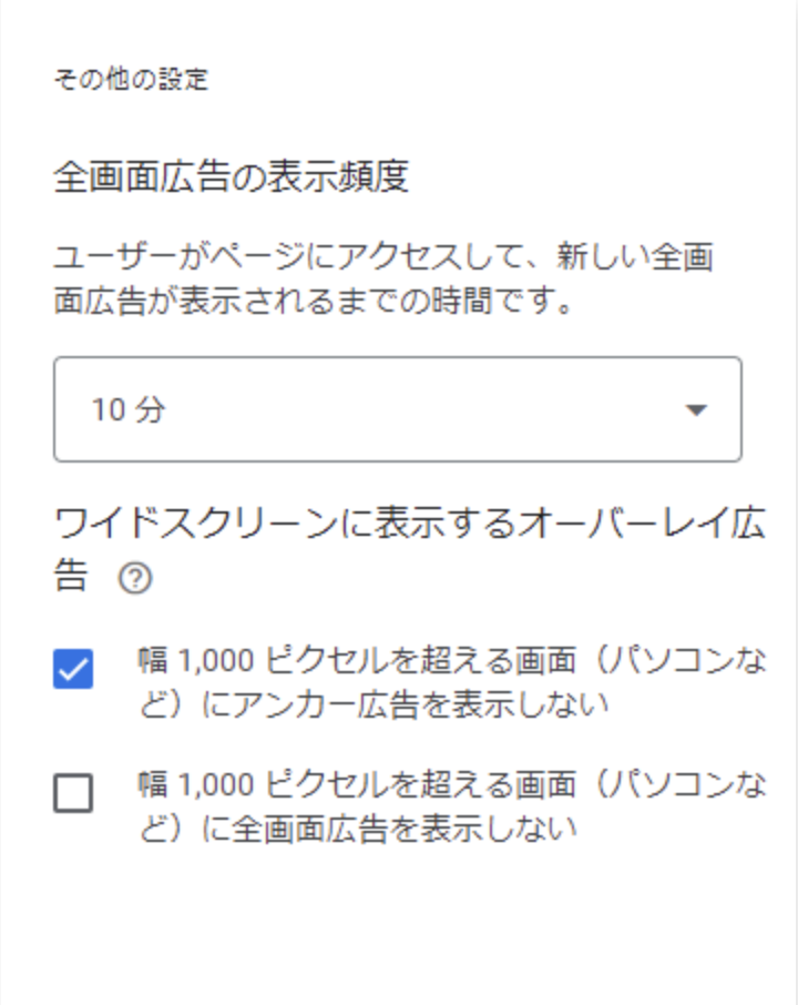 全画面広告にチェックを入れると表示頻度を設定する項目が出現しますので、希望する頻度を選択しましょう。