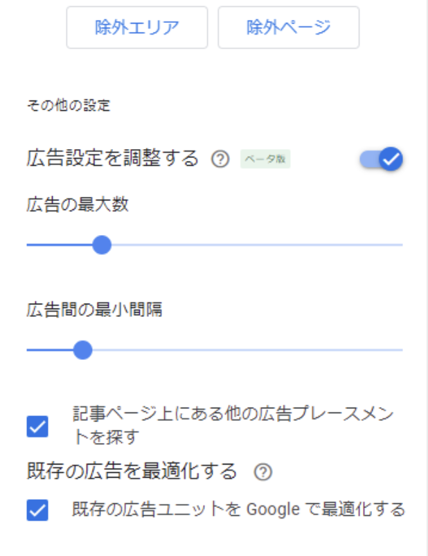 デフォルトのままでも多くの広告が表示されますので、私はデフォルトのままにしています。(記事上部は手動で入れているというのもあります)