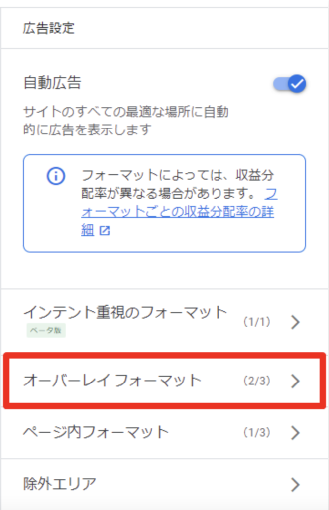 「ワイドスクリーンに表示するオーバーレイ広告」については、それぞれ希望するほうを選択するとOK!