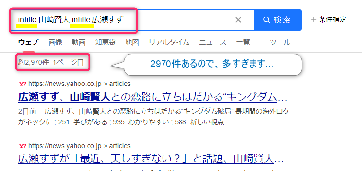 これは「山崎賢人 広瀬すず」をタイトルに入れた記事が2970件あるという事です…