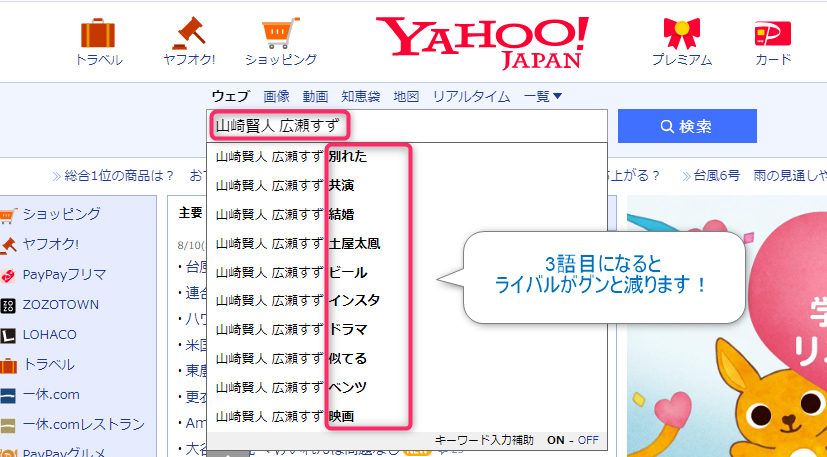 Yahoo:トレンド的なキーワードが見つかりやすい
