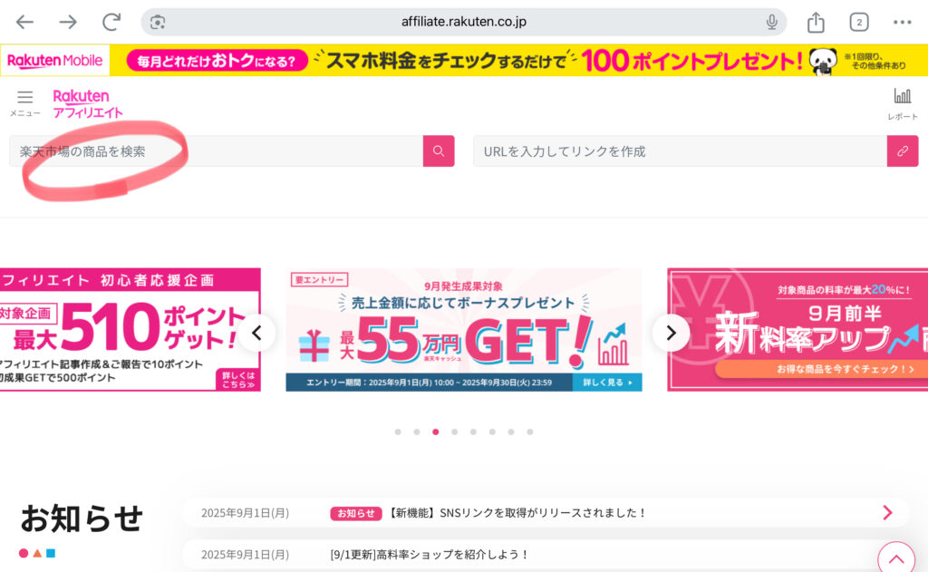 楽天アフィリエイト公式サイトにて、新機能「SNSリンクを取得」がリリースされました。