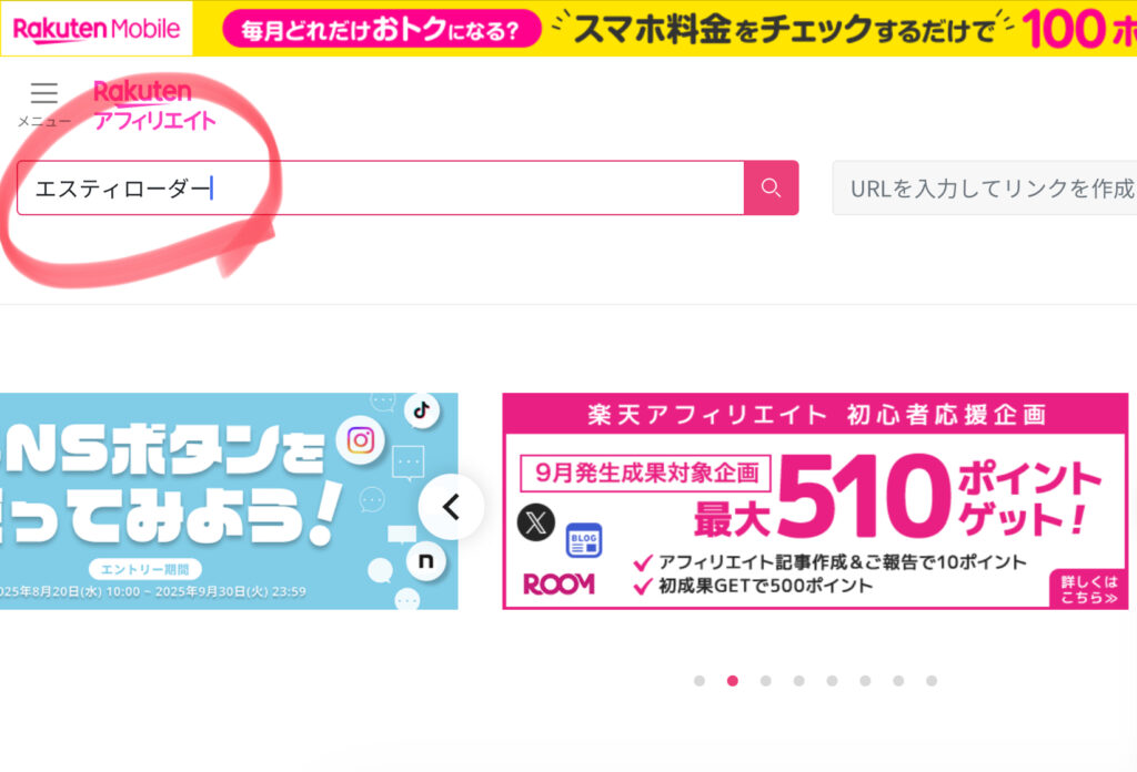 ブランド公式ショップがない場合は、楽天市場の検索結果画面をアフィリエイトリンクにするのがおすすめです。