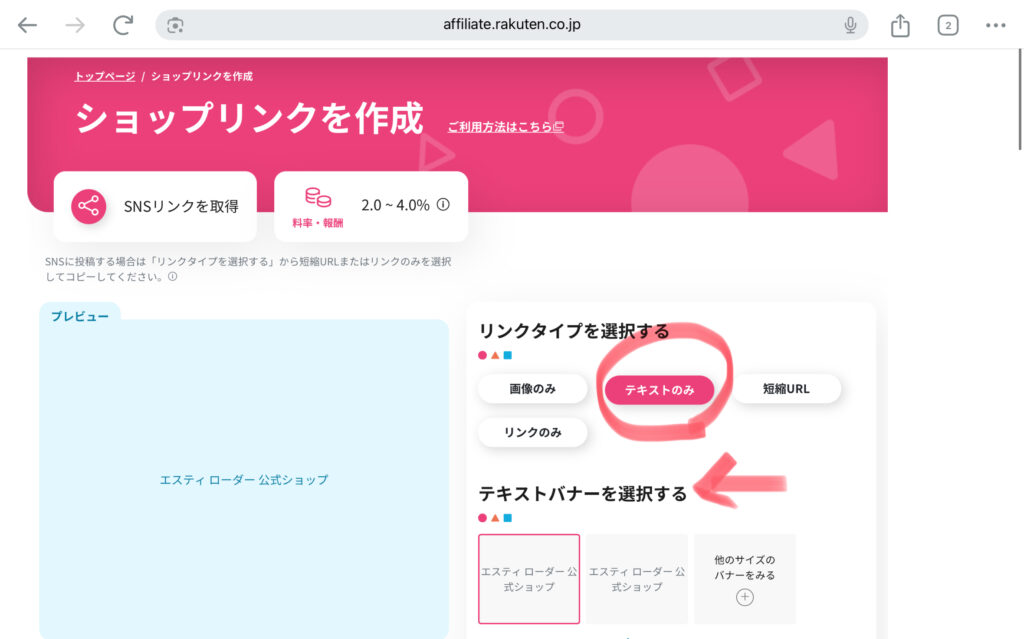【楽天アフィリエイト】テキストリンクの貼り方