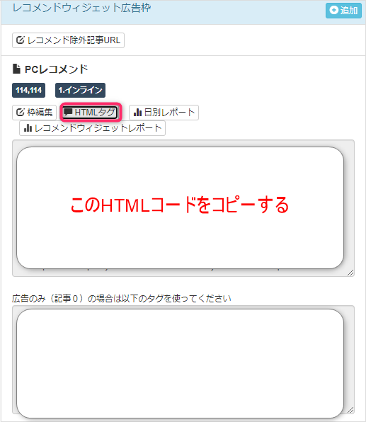 サイドバーレコメンド⇒HTMLタグをクリックします。